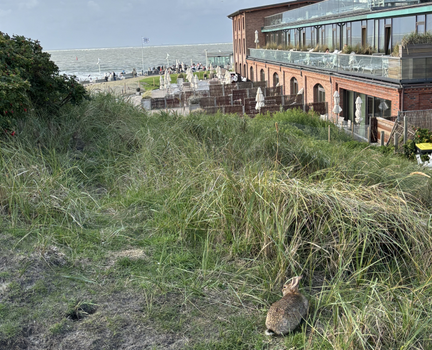 Vielleicht liegt es an der grandiosen Natur, der Nordsee, dem Wattenmeer, den saftigen Wiesen und grasbewachsenden Dünen? Hasen hoppeln vor uns auf dem Weg zum Abendessen. Die Möwen hätten gerne einen Bissen von meinem Fischbrötchen. Und von Ossi, dem Wirt der Kleinen Freiheit erfahre ich, dass der Busfahrer von Norderney nur einer von vielen Sechzger-Fans auf der Insel ist. Dazu ein Bier mit Fischsemmel und der Traum ist perfekt.